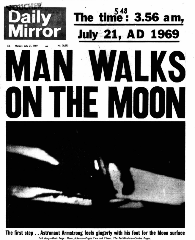 Man sets foot on the actual bloody moon for only the second time in history. Big news, as all the newspapers reported: