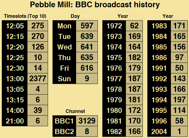 Marvellous overview of Pebble Mill, from an a fellow PM historian. Just out of interest, where would PM have come in your listing if you included Daytime Live and Scene Today? (I understand you might never find the time to answer this.)
