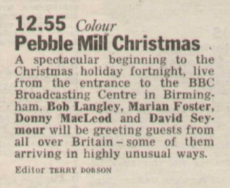 By 1974, the programme was popular enough to warrant its very own Christmas specials. Still in the daytime schedule (on 23 and 24 December, mind), but they’re using the word ‘spectacular’ in the listing, so something big must have been going on. Not big enough to let them borrow an actual studio, but still.