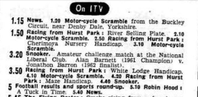 “Rarely can any sport, even on television, offer its supporters the top eight exponents of the game in one fifteen-minute appearance. Tonight BBC-2 does just that” boasted the Radio Times listing, and that’s exactly what was on offer here.
