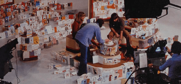 Considering that at least thirty people have the chance to make or break each live Blue Peter transmission, it’s amazing that the disasters are so few. Come the crunch, when it’s live there is that extra adrenalin flowing and an extra camaraderie that, nine times out of ten, creates pretty nearly what you’ve hoped to achieve. When the disasters happen they’re usually mega ones, like a telecine machine playing in an eight minute film breaking down at the beginning of the reel — on a day when there’s no back-up on video. Or a cheerful chap in a brown coat walking into the studio during transmission clutching a large black plastic sack and yelling: “Let’s be having you then, where’s your rubbish?” Or the anonymous engineer deep in the bowels of Television Centre pulling a vital plug that disconnects the large, motorised camera taking the most important shots in the whole programme.