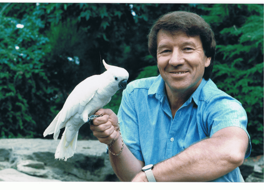 Here’s Australian Play School presenter Don Spencer with the programme’s longest-serving pet, Katoo.